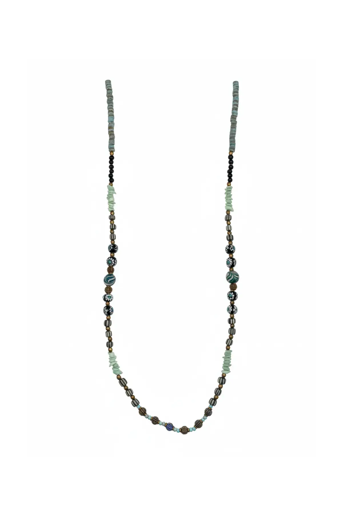 Malzeme: Doğal Taşlar, Cam ve Ahşap Boncuklar, Antik Pirinç Detaylar